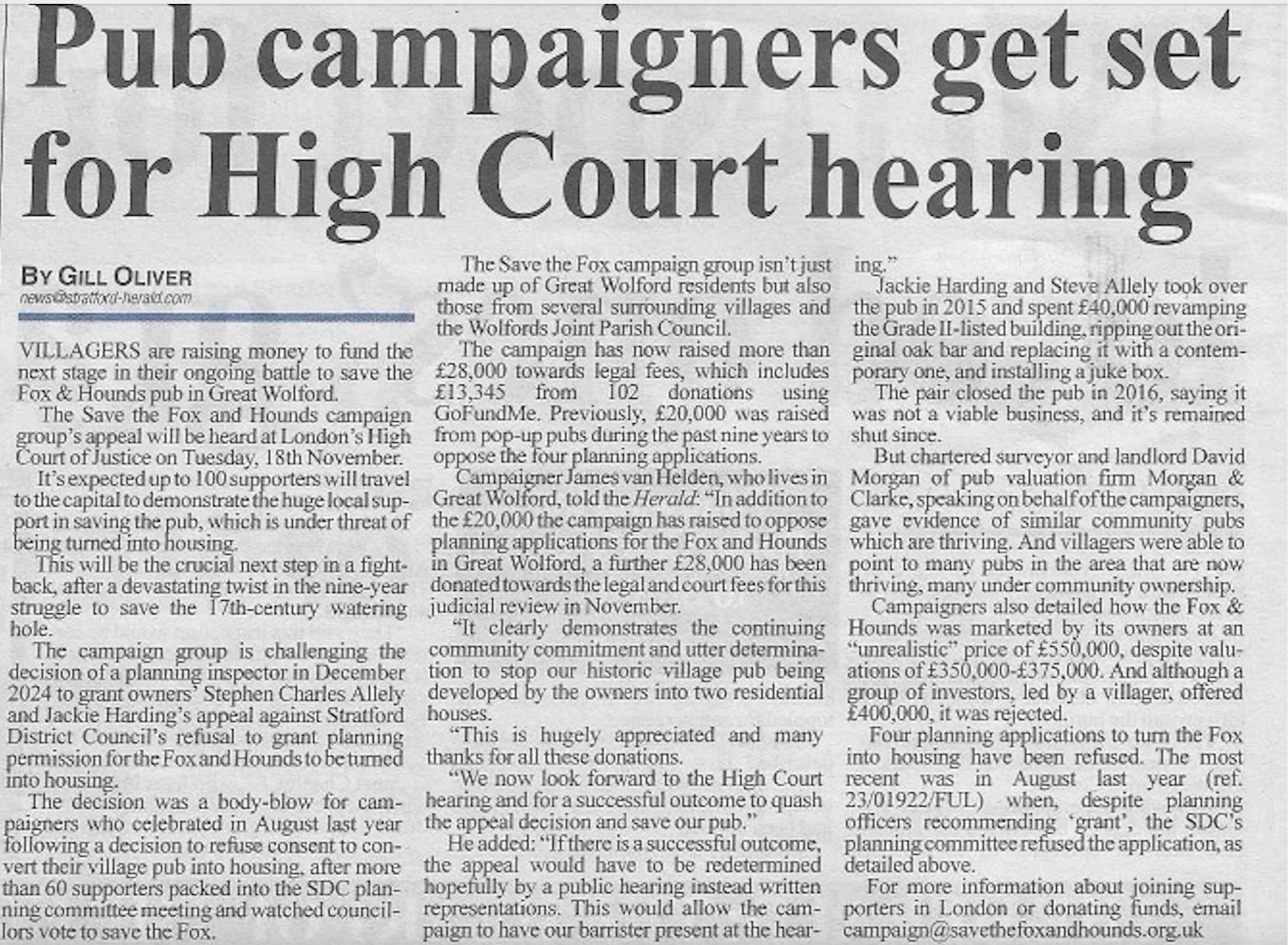 Are you thinking of joining us in the public gallerty of the High Court? If so, please email us on campaign@savethefoxandhounds.org.uk